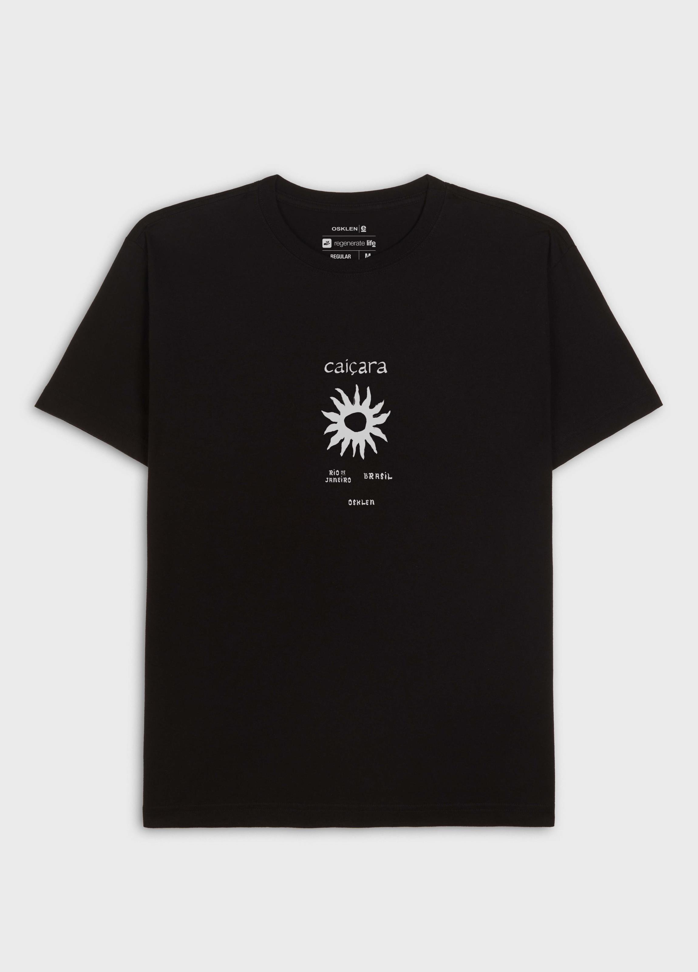 T-Shirt masculina 1/2 malha 100% algodão certificado, base de modelagem Regular, com visual gastinho, feito manualmente, peça a peça. A produção do algodão nacional certificado contribui para redução dos impactos ambientais, utiliza energia renovável, reduz o consumo de água e fomenta o aprimoramento social e ambiental das cadeias produtivas brasileiras. Bandeira Regenerate Life.