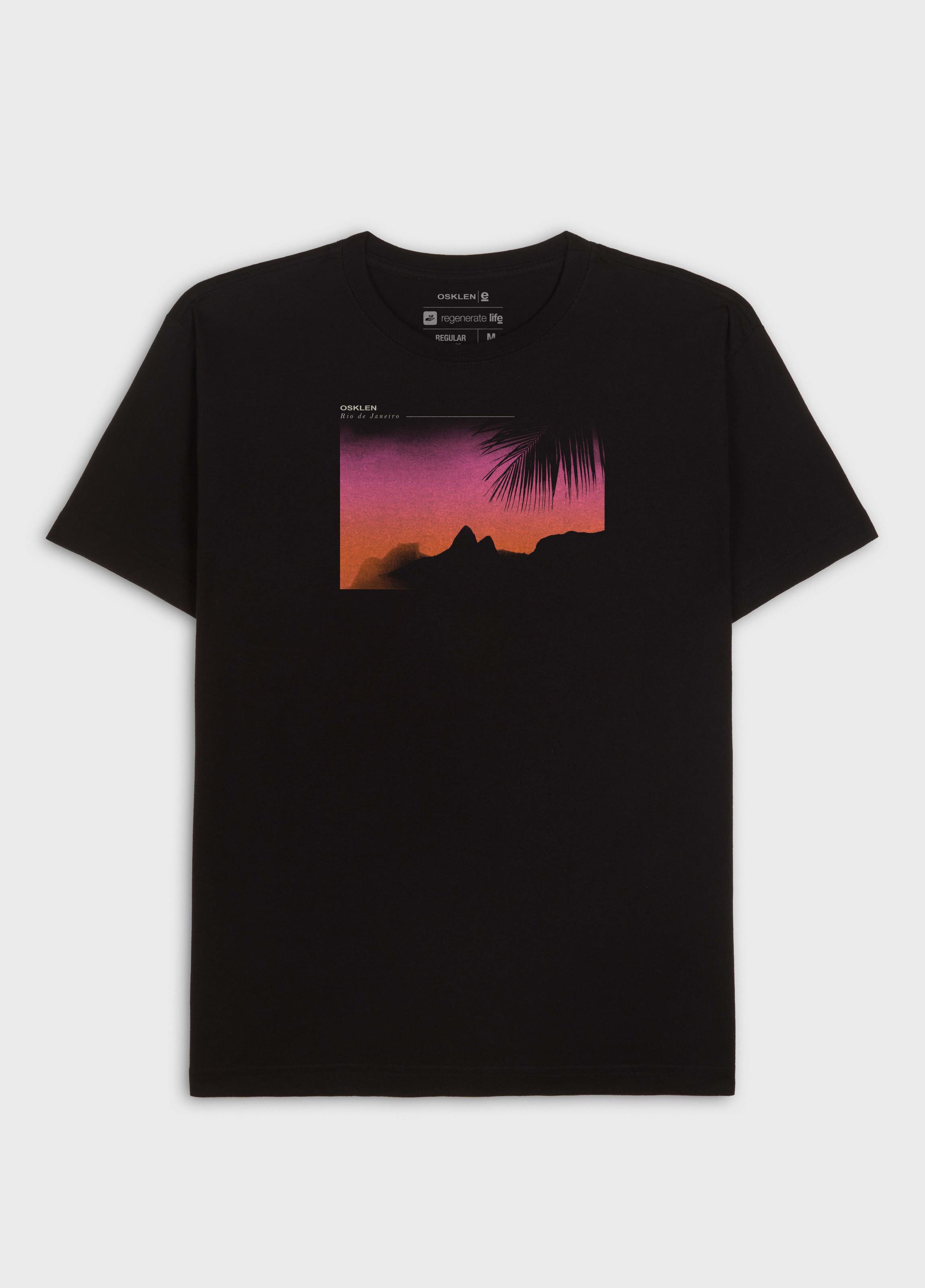 T Shirt masculina 1/2 malha 100% algodão certificado, base de modelagem Regular. Bandeira Regenerate Life. A produção do algodão nacional certificado contribui para redução dos impactos ambientais, utiliza energia renovável, reduz o consumo de água e fomenta o aprimoramento social e ambiental das cadeias produtivas brasileiras.