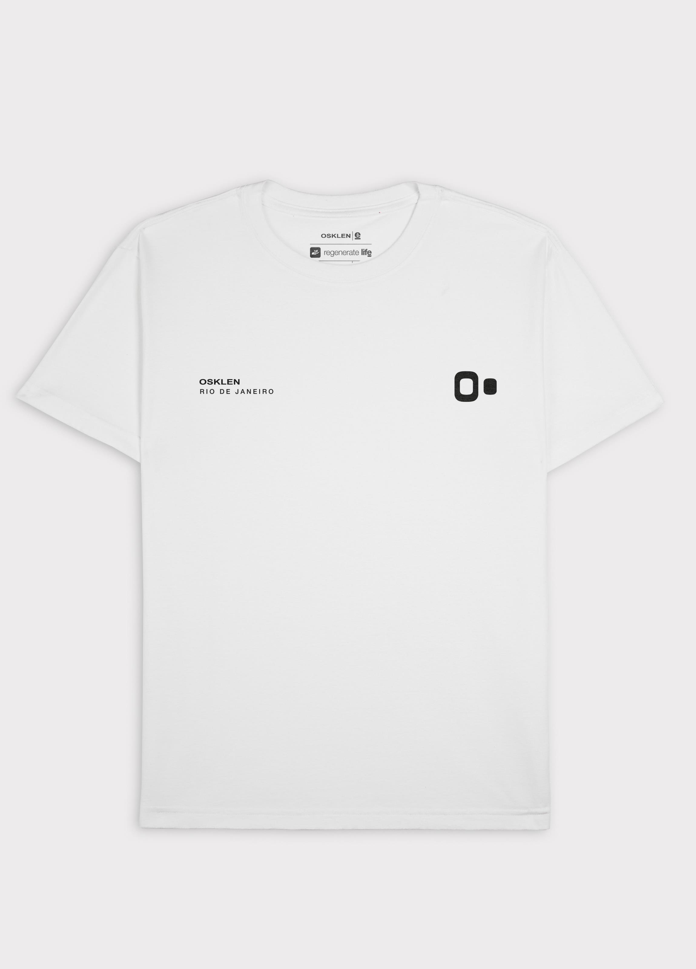 T-Shirt masculina 1/2 malha 100% algodão certificado, base de modelagem Slim, com visual gastinho, feito manualmente, peça a peça. A produção do algodão nacional certificado contribui para redução dos impactos ambientais, utiliza energia renovável, reduz o consumo de água e fomenta o aprimoramento social e ambiental das cadeias produtivas brasileiras. Bandeira Regenerate Life.
