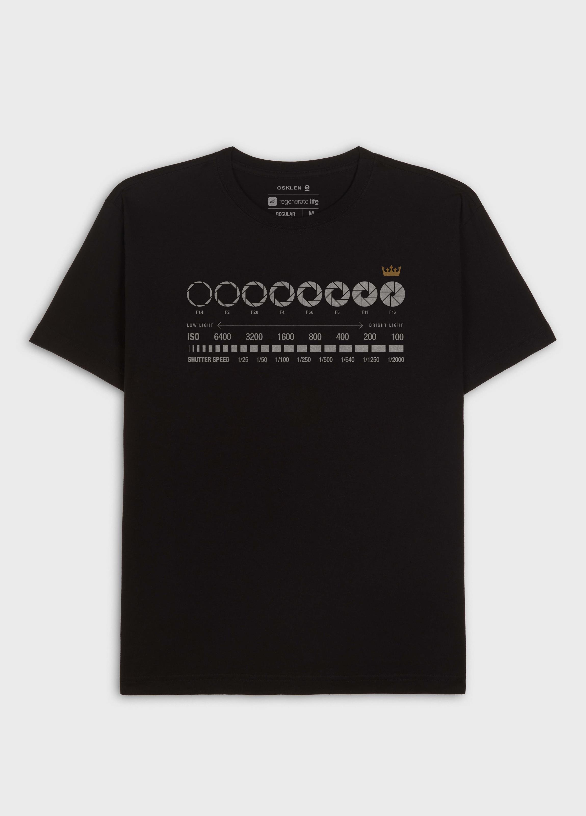 T Shirt masculina 1/2 malha 100% algodão certificado, base de modelagem Regular. Bandeira Regenerate Life. A produção do algodão nacional certificado contribui para redução dos impactos ambientais, utiliza energia renovável, reduz o consumo de água e fomenta o aprimoramento social e ambiental das cadeias produtivas brasileiras.