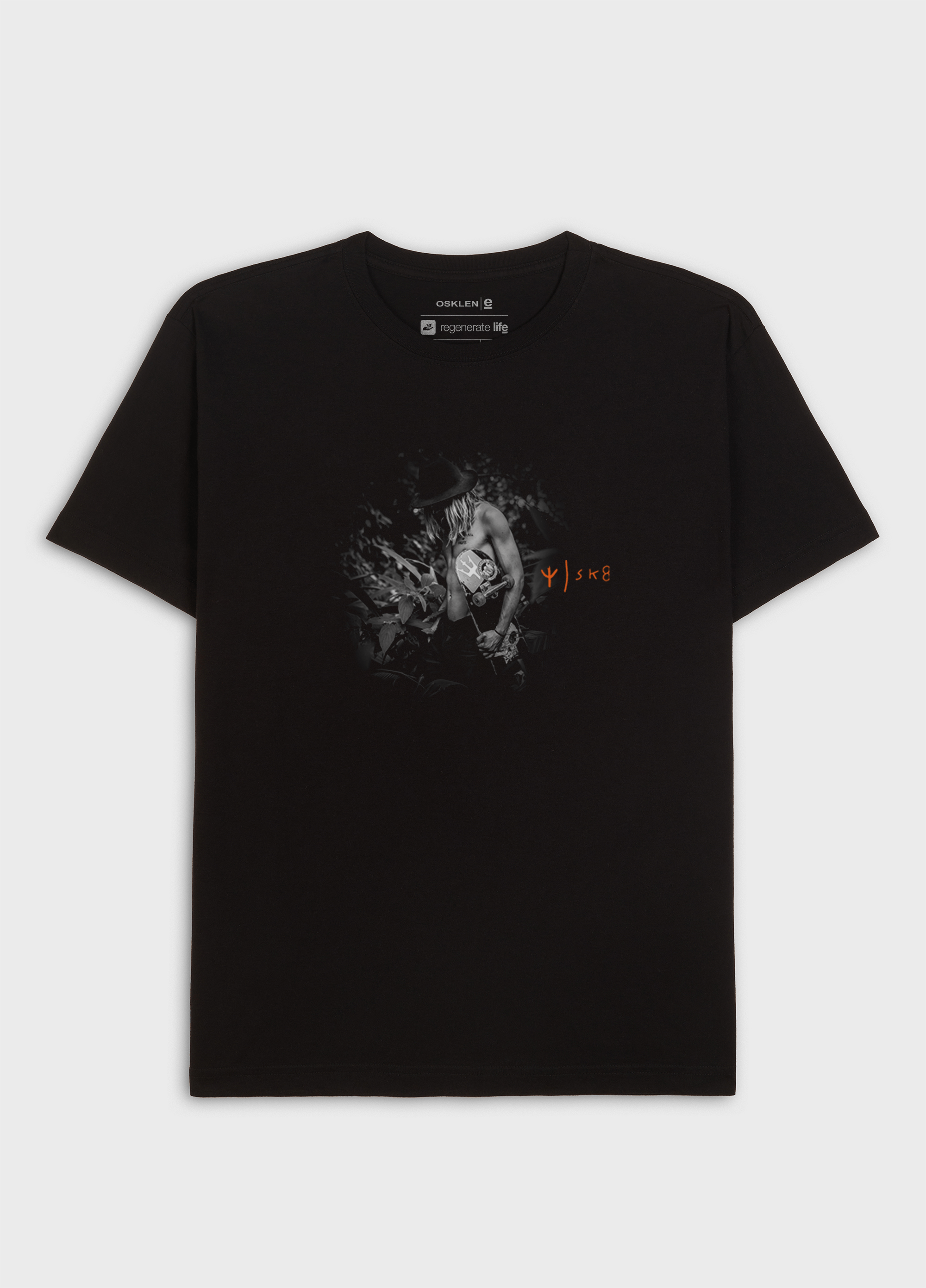 T Shirt masculina 1/2 malha 100% algodão certificado, base de modelagem Regular. Bandeira Regenerate Life. A produção do algodão nacional certificado contribui para redução dos impactos ambientais, utiliza energia renovável, reduz o consumo de água e fomenta o aprimoramento social e ambiental das cadeias produtivas brasileiras.