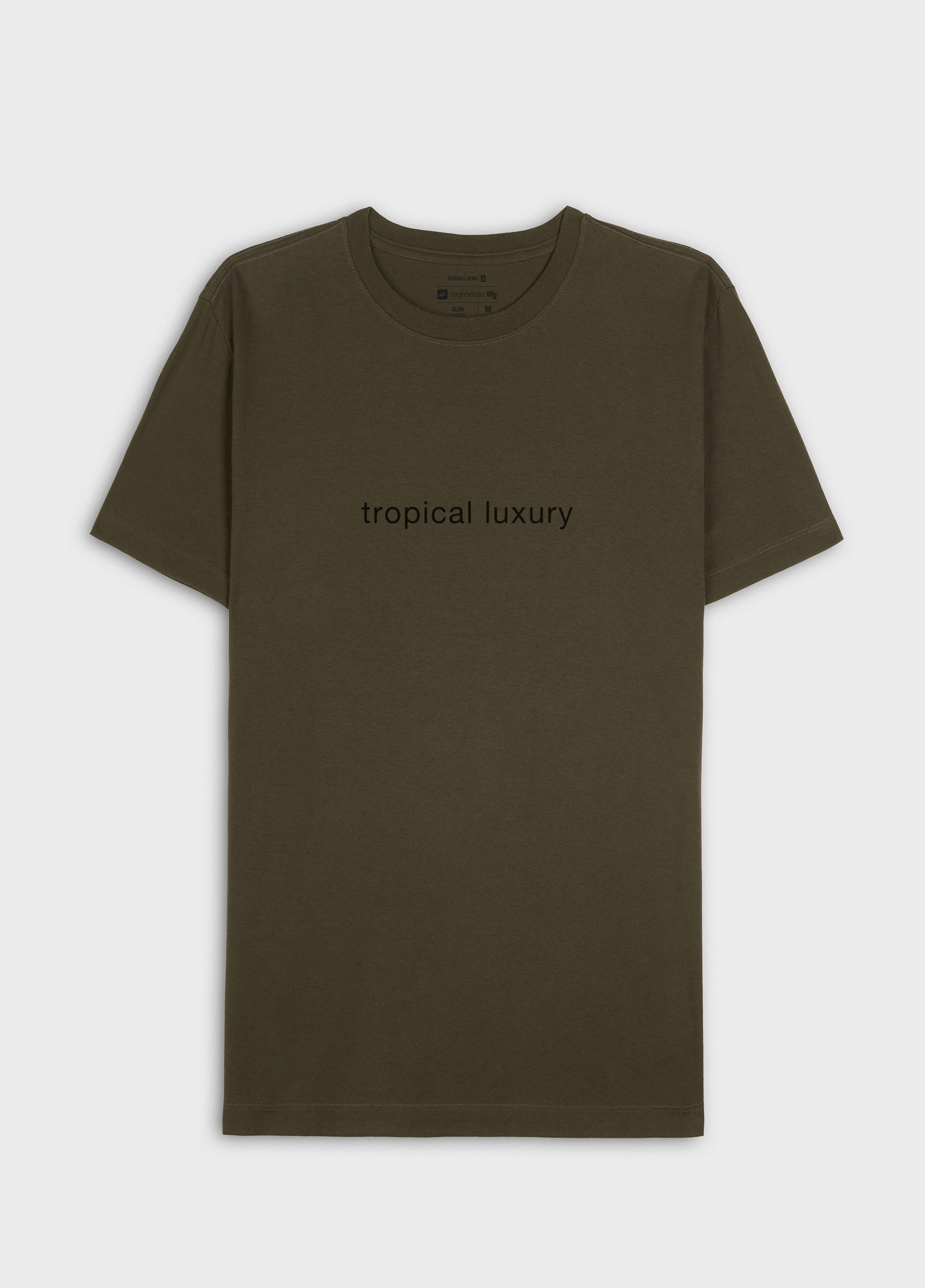 T-Shirt masculina 1/2 malha 100% algodão certificado, base de modelagem Slim, com visual gastinho, feito manualmente, peça a peça. A produção do algodão nacional certificado contribui para redução dos impactos ambientais, utiliza energia renovável, reduz o consumo de água e fomenta o aprimoramento social e ambiental das cadeias produtivas brasileiras. Bandeira Regenerate Life.
