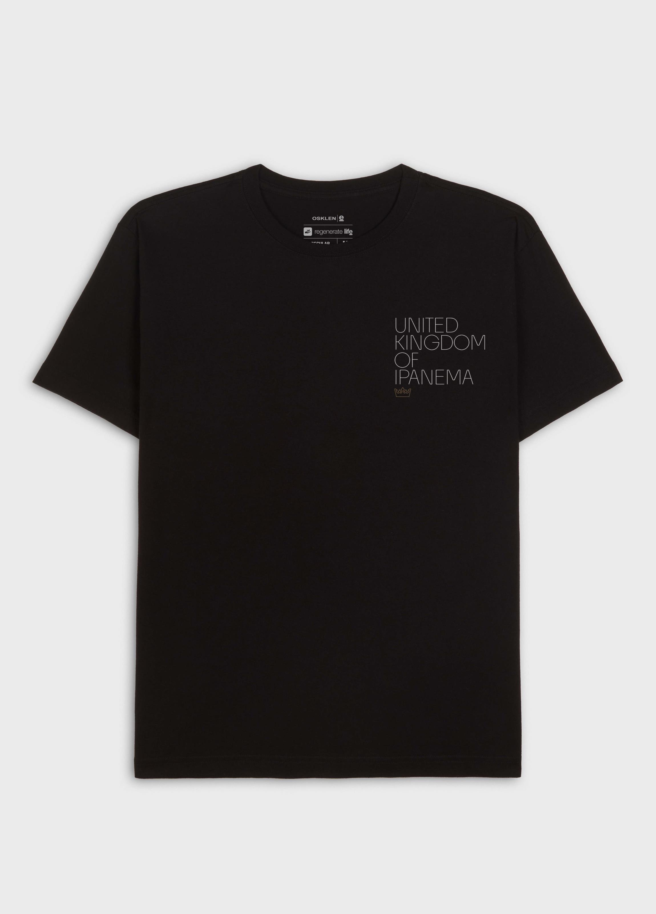 T-Shirt masculina 1/2 malha 100% algodão certificado, base de modelagem Regular, com visual gastinho, feito manualmente, peça a peça. A produção do algodão nacional certificado contribui para redução dos impactos ambientais, utiliza energia renovável, reduz o consumo de água e fomenta o aprimoramento social e ambiental das cadeias produtivas brasileiras. Bandeira Regenerate Life.