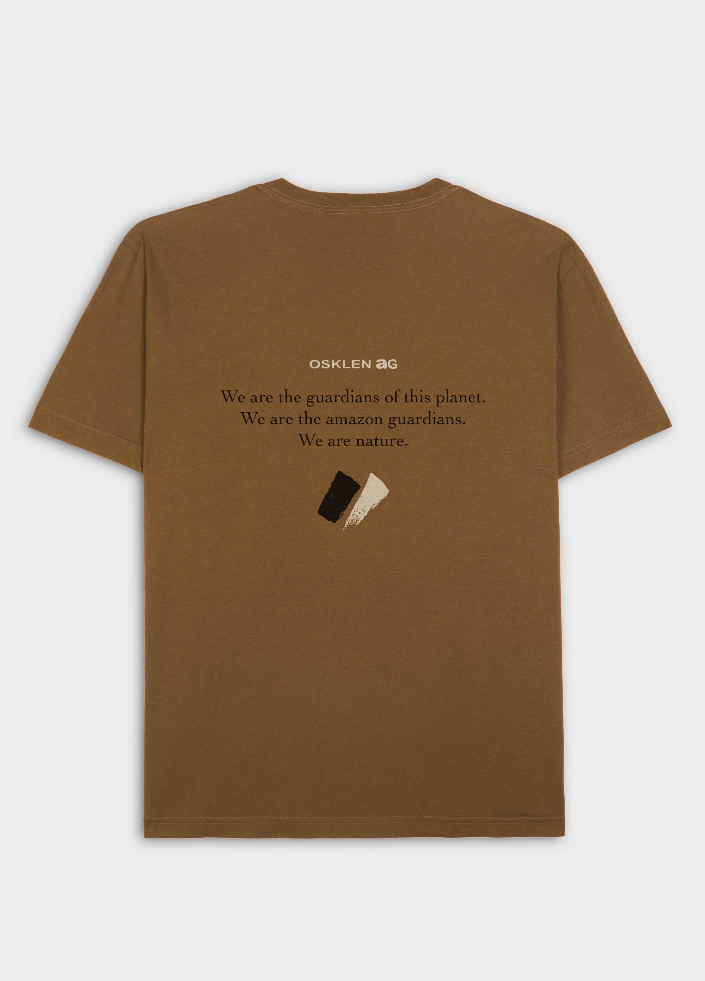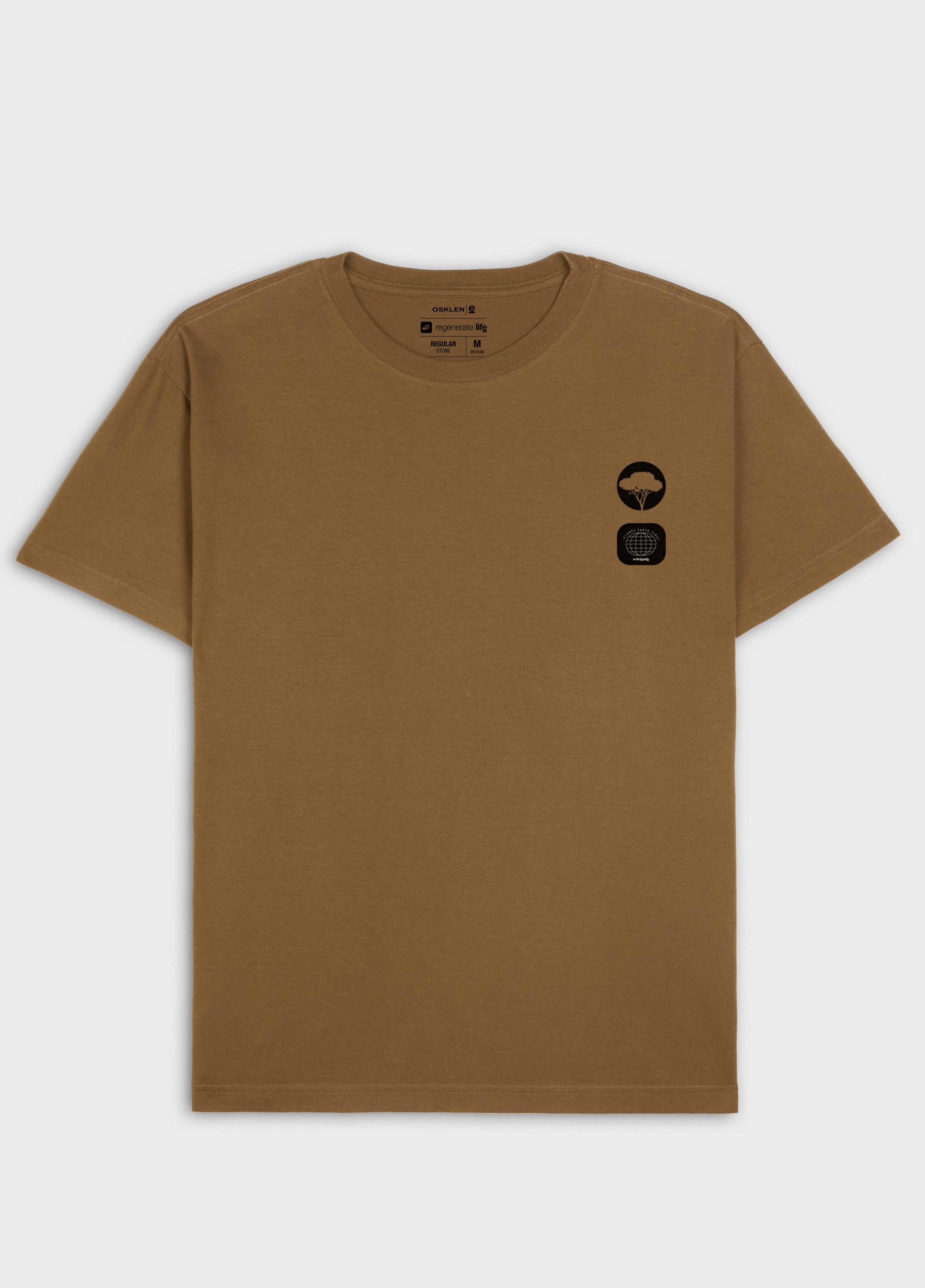 T-Shirt masculina 1/2 malha 100% algodão certificado, base de modelagem Slim, com visual gastinho, feito manualmente, peça a peça. A produção do algodão nacional certificado contribui para redução dos impactos ambientais, utiliza energia renovável, reduz o consumo de água e fomenta o aprimoramento social e ambiental das cadeias produtivas brasileiras. Bandeira Regenerate Life.