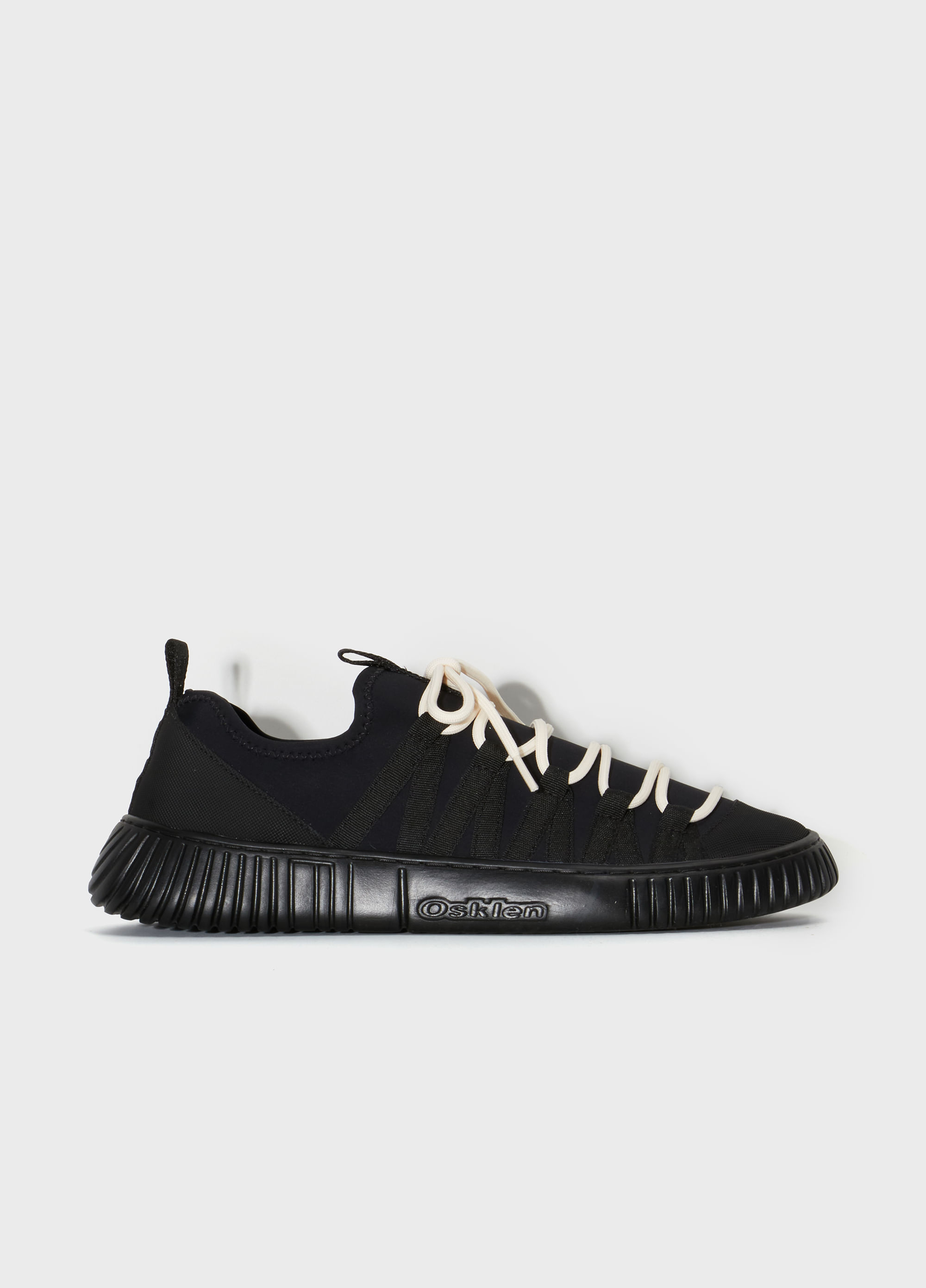 Tênis Arp(X) em material elástico com recortes de borracha texturizada no bico e traseira. Modelo de amarração com cadarço de corda esportiva. Forro parcial e palmilha em couro. Solado com EVA Verde costurado ao cabedal com design exclusivo Osklen, produzido com carbono de base biológica, oriundo da cana de açúcar plantada e cultivada no Brasil. Produto Regenerate Life.