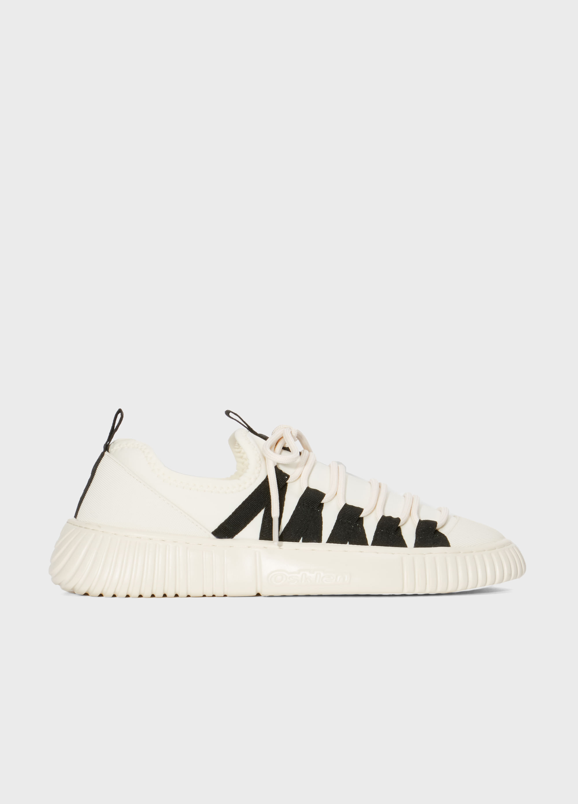 Tênis Arp(X) em material elástico com recortes de borracha texturizada no bico e na traseira. Modelo de amarração com cadarço de corda esportiva. Forro parcial e palmilha em couro. Solado com EVA Verde costurado ao cabedal com design exclusivo Osklen, produzido com carbono de base biológica, oriundo da cana de açúcar plantada e cultivada no Brasil. Produto Regenerate Life.