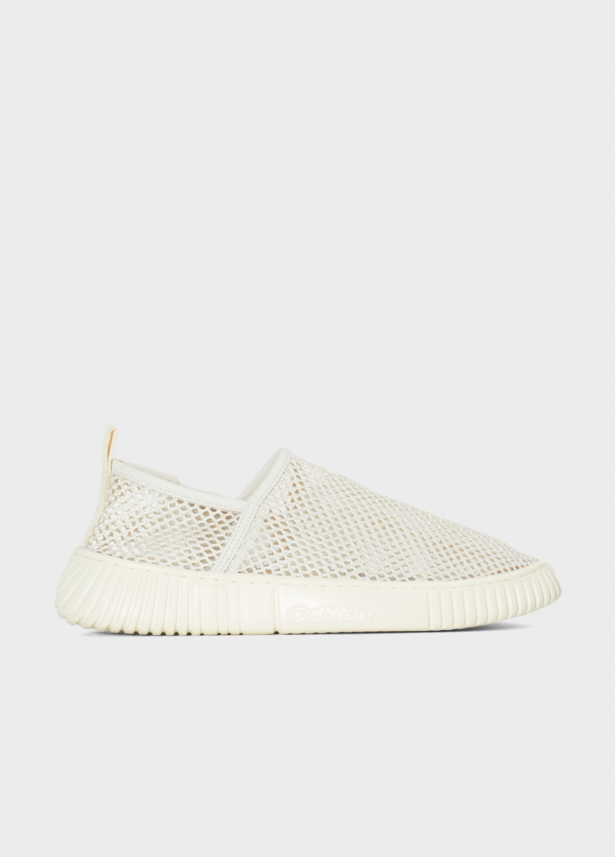 Tênis com cabedal em tela mesh. Modelo slip on com elástico lateral para facilitar o calce. Palmilha em couro. Solado com EVA Verde costurado ao cabedal com design exclusivo Osklen, produzido com mais de 70% de carbono de base biológica, oriundo da cana de açúcar plantada e cultivada no Brasil. Produto Regenerate Life.
