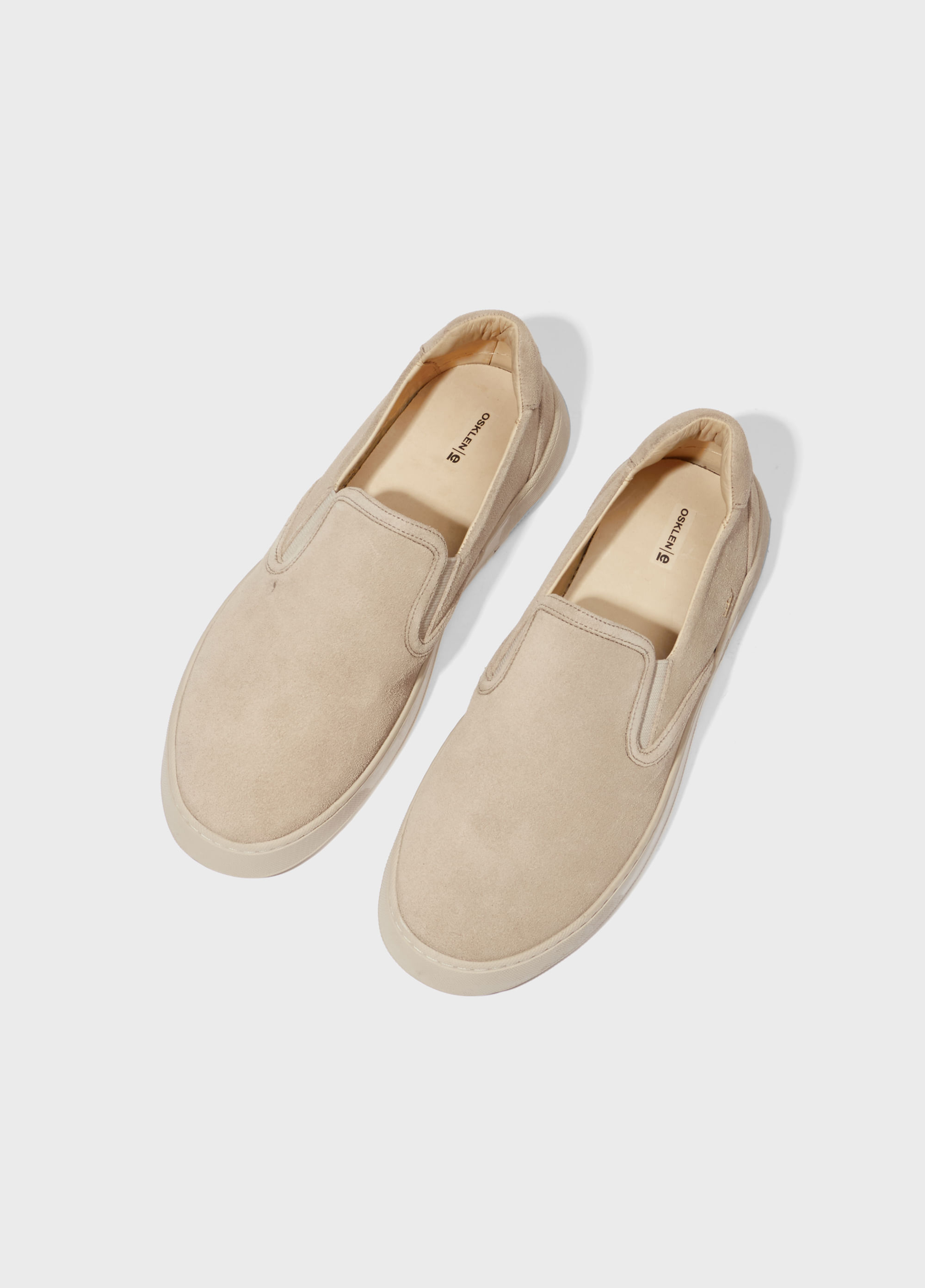 Tênis Soho Bossanova em camurça bovina. Modelo slip on com elásticos para facilitar o calce. Forro e palmilha em couro. Solado de borracha costurado ao cabedal com design exclusivo Osklen. Produto Re-Design Waste. Produzido com no mínimo 10% de material reciclado.