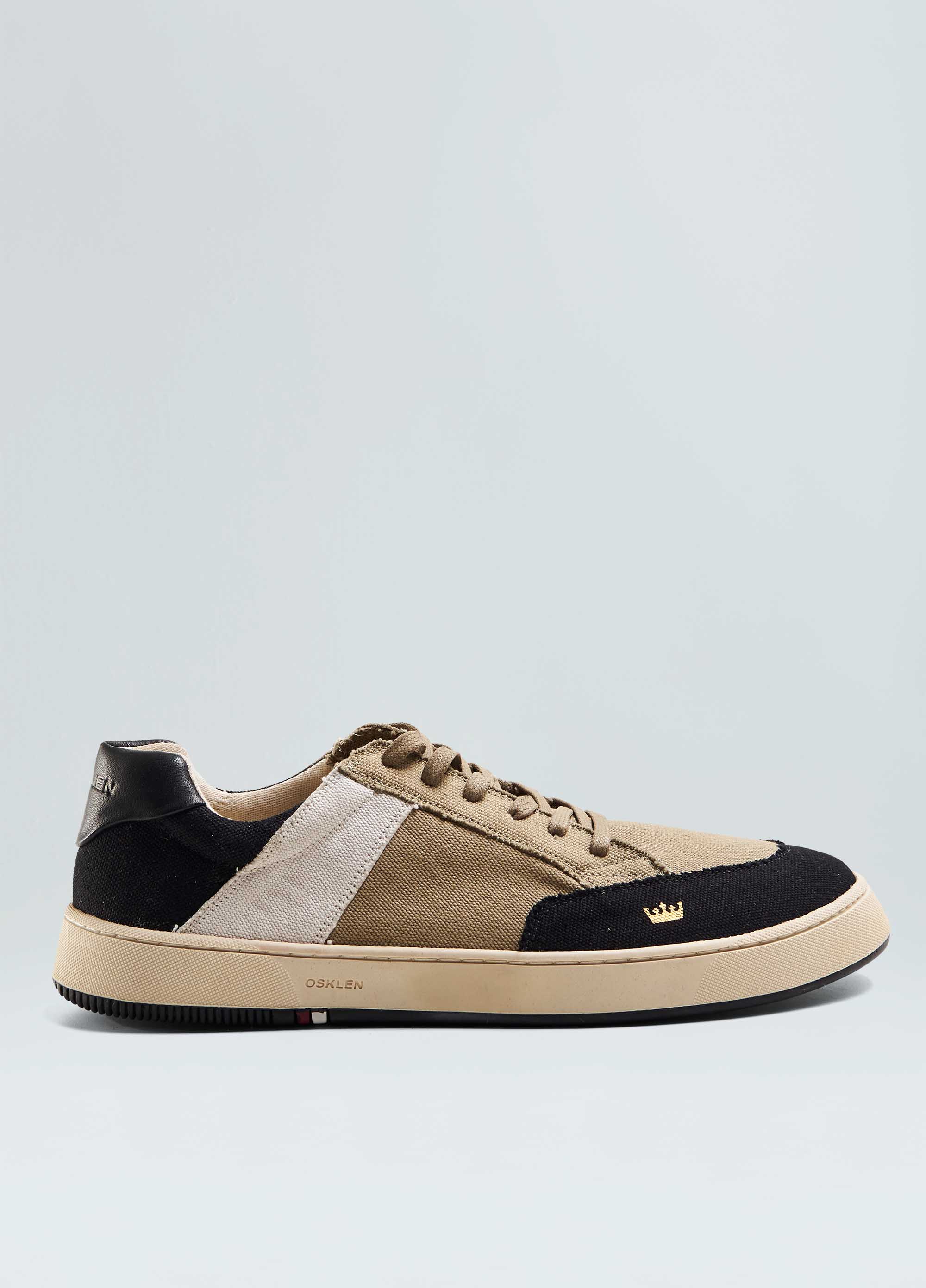 Tênis Soho em lona 100% algodão. Modelo de amarração com cadarço de algodão. Forro em sarja 100% algodão e palmilha em couro. Solado de borracha costurado ao cabedal com design exclusivo Osklen, produzido com no mínimo 10% de material reciclado. Produto Re-Design Waste.