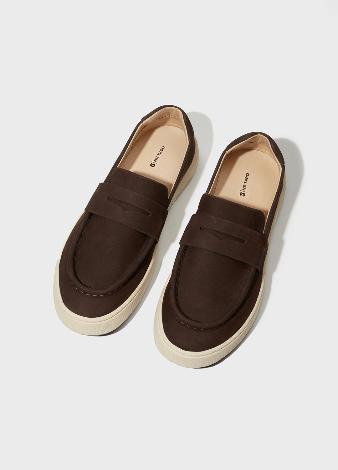 Tênis soho em couro com toque aveludado. Modelo slip-on sem amarração. Forro e palmilha em couro. Solado de borracha costurado ao cabedal com design exclusivo Osklen, produzido com no mínimo 10% de material reciclado. Produto Re-Design Waste.