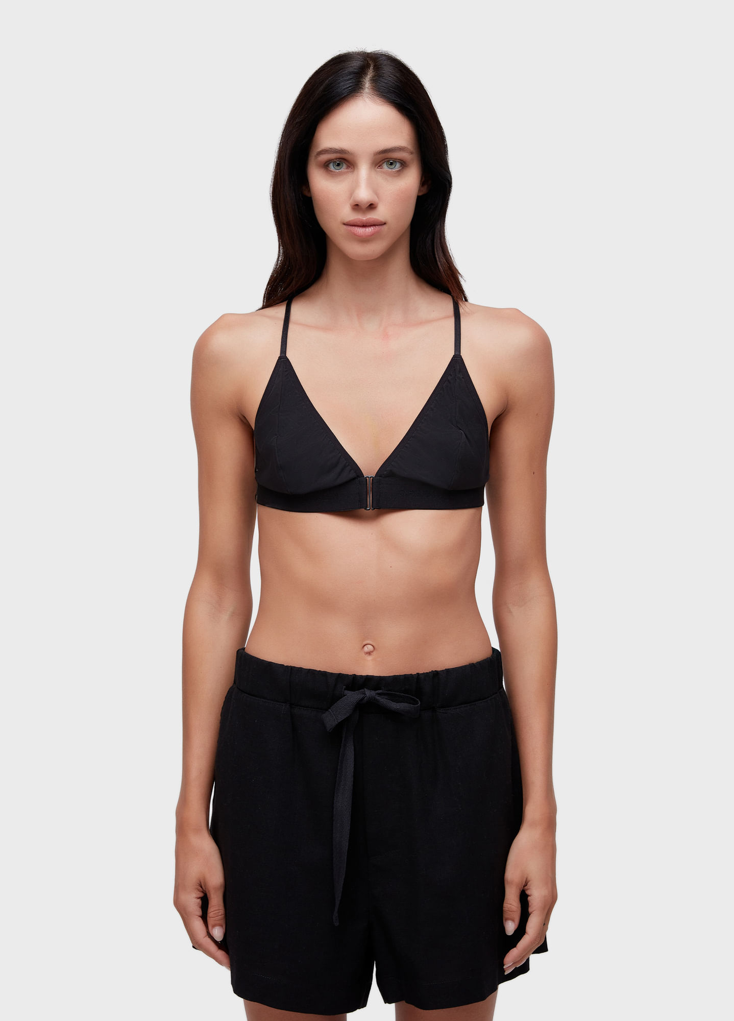Top de tule elástico com decote V na frente e detalhe nas costas em modelo nadador. Possui elástico personalizado Osklen no tórax e fechamento com gancho na frente. Alças reguláveis.