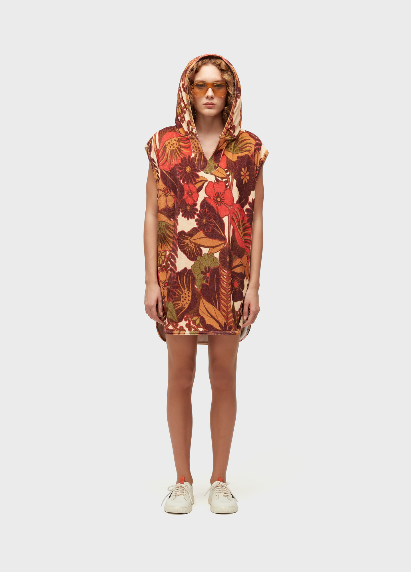 DUO COLETE E UNDERWEAR FEITOS EM MALHA ATOALHADA COM ESTAMPA GARDEN PARTY EXCLUSIVA OSKLEN. O COLETE TEM CAPUZ E DECOTE EM V COM MODELAGEM RETA COM TACOS NAS LATERAIS; E CONJUNTO UNDER COMPOSTO DE TOP DE ALçAS RETAS COM DECOTE U E CALCINHA COM ELÁSTICO OSKLEN NA CINTURA. BANDEIRA RL: CERTIFIED COTTON
